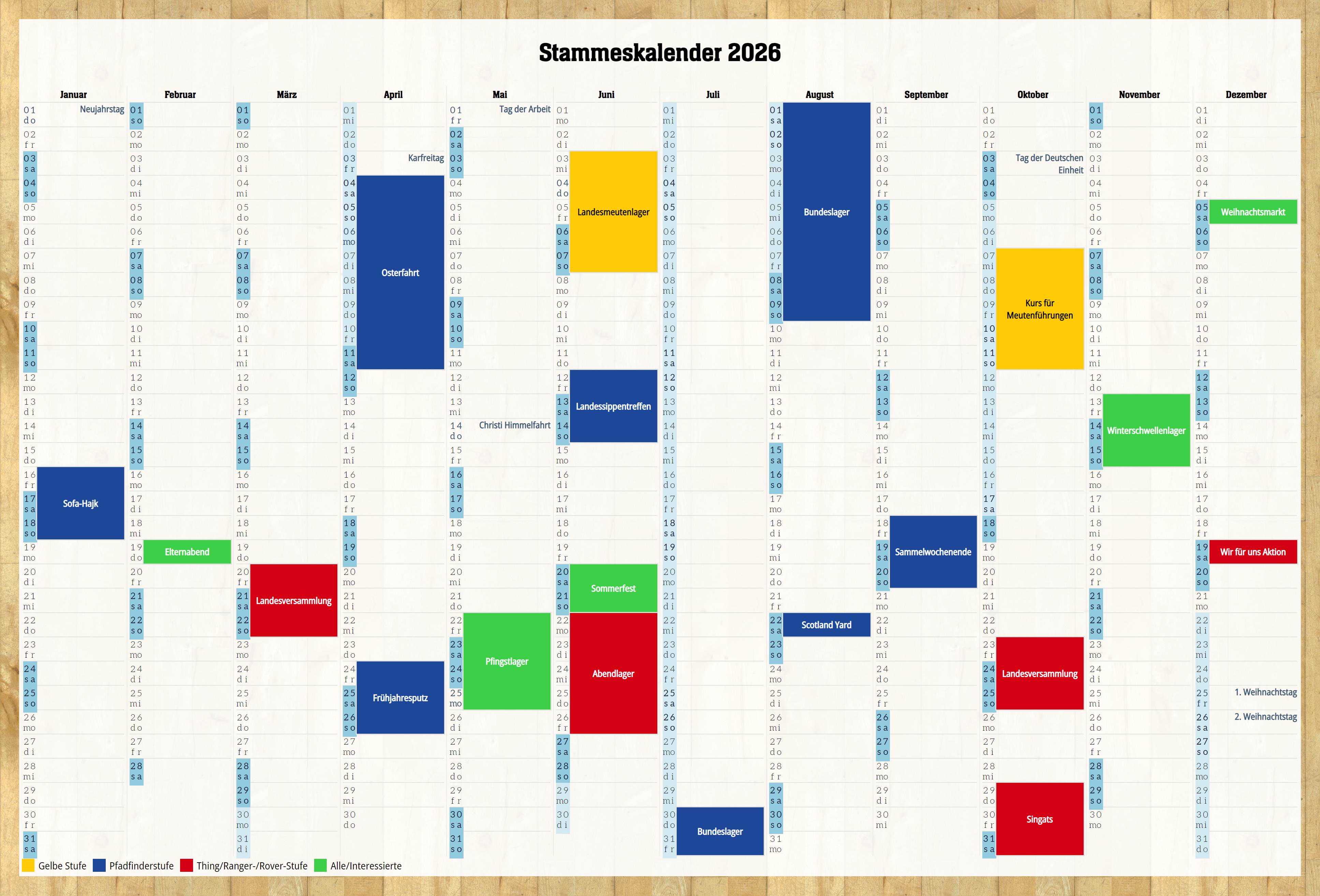 Alle Aktionen und Termine für das Jahr 2026 findest du im Stammeskalender: